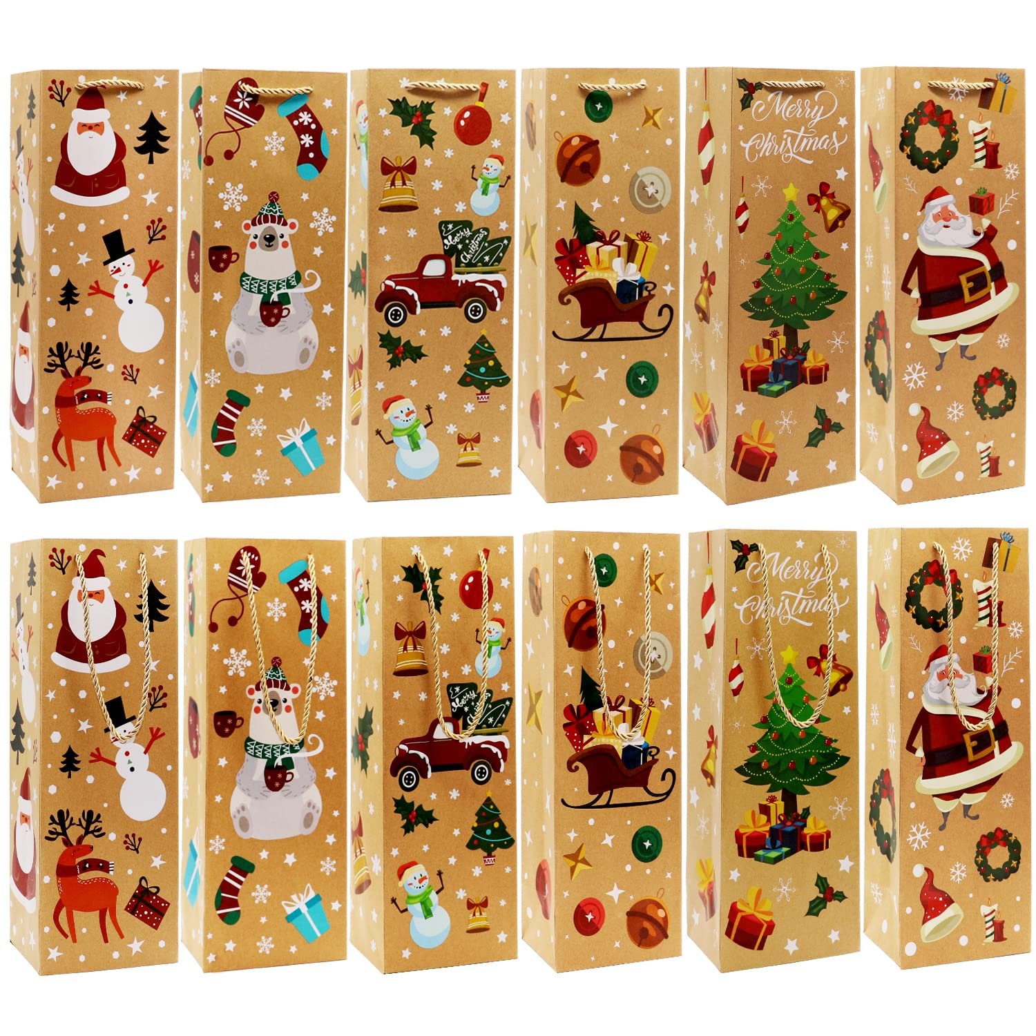 With twelve bags in a range of charming designs, they make it easy to dress up a bottle of wine for Christmas or any celebration.